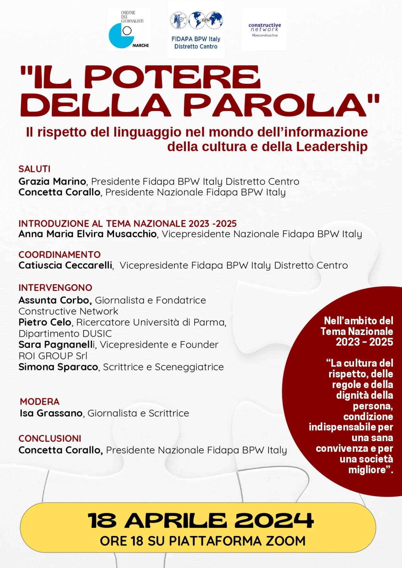 Nasce nel maggio 2024 la proposta di un progetto concreto per rafforzare l’empowerment femminile, all'interno del Tema Nazionale 2023-2025: “La cultura del rispetto, delle regole e della dignità della persona, condizione indispensabile per una sana convivenza e per una società migliore”.